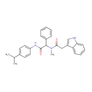 InChI=1S/C28H29N3O2/c1-19(2)20-13-15-23(16-14-20)30-28(33)27(21-9-5-4-6-10-21)31(3)26(32)17-22-18-29-25-12-8-7-11-24(22)25/h4-16,18-19,27,29H,17H2,1-3H3,(H,30,33)