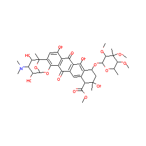 CC1C(C(C(C(O1)OC2CC(C(C3=C2C(=C4C(=C3)C(=O)C5=C6C(=CC(=<br />C5C4=O)O)C7(C(C(C(C(O6)O7)O)N(C)C)O)C)O)C(=O)OC)(C)O)OC<br />)(C)OC)OC