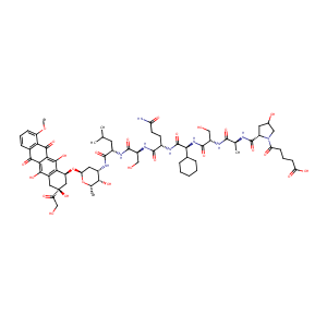 CC1C(C(CC(O1)OC2CC(CC3=C(C4=C(C(=C23)O)C(=O)C5=C(C4=O)C<br />=CC=C5OC)O)(C(=O)CO)O)NC(=O)C(CC(C)C)NC(=O)C(CO)NC(=O)C<br />(CCC(=O)N)NC(=O)C(C6CCCCC6)NC(=O)C(CO)NC(=O)C(C)NC(=O)C<br />7CC(CN7C(=O)CCCC(=O)O)O)O