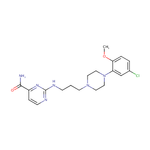 N1(c2cc(ccc2OC)Cl)CCN(CC1)CCCNc1nc(C(=O)N)ccn1
