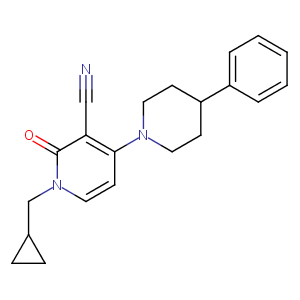 InChI=1S/C21H23N3O/c22-14-19-20(10-13-24(21(19)25)15-16-6-7-16)23-11-8-18(9-12-23)17-4-2-1-3-5-17/h1-5,10,13,16,18H,6-9,11-12,15H2
