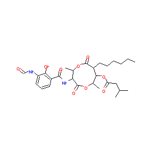 CCCCCCC1C(C(OC(=O)C(C(OC1=O)C)NC(=O)C2=C(C(=CC=C2)NC=O)<br />O)C)OC(=O)CC(C)C