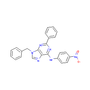 C1=CC=C(C=C1)CN2C=NC3=C2N=C(N=C3NC4=CC=C(C=C4)[N+](=O)[<br />O-])C5=CC=CC=C5