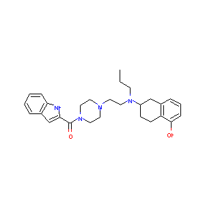 1S/C28H36N4O2/c1-2-12-31(23-10-11-24-21(19-23)7-5-9-27(24)33)16-13-30-14-17-32(18-15-30)28(34)26-20-22-6-3-4-8-25(22)29-26/h3-9,20,23,29,33H,2,10-19H2,1H3/t23-/m0/s1