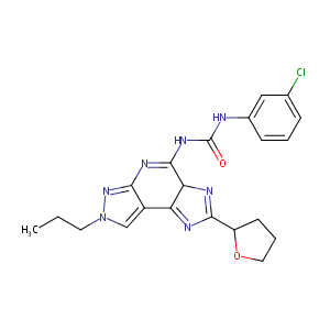 InChI=1S/C21H22ClN7O2/c1-2-8-29-11-14-16-17(25-19(24-16)15-7-4-9-31-15)20(26-18(14)28-29)27-21(30)23-13-6-3-5-12(22)10-13/h3,5-6,10-11,15,17H,2,4,7-9H2,1H3,(H2,23,26,27,28,30)