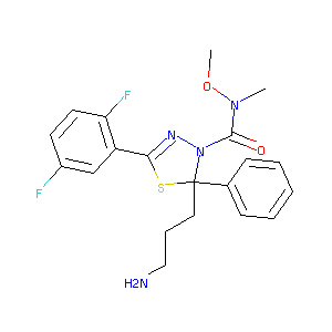 CN(C(=O)N1C(SC(=N1)C2=C(C=CC(=C2)F)F)(CCCN)C3=CC=CC=C3)<br />OC