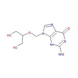 Citovirax; Cymevan; Cymeven; Cymevene; Cytovene; Ganciclovirum; Gancyclovir; HHEMG; Hydroxyacyclovir; Virgan; Vitrasert; Zirgan; GANCICLOVIR SODIUM; Ganciclovirum [Latin]; BW 759; BW 759U; Biolf 62; G 2536; GA2; IN1478; MB3795; BIOLF-62; BW-759U; BW-795; BW-B 759U; Cymevene (TN); Cytovene (TN); Cytovene-IV; DRG-0018; GCV & 1110U81; GCV & MSL; RS-21592; ST-605; Vitrasert (TN); Ganciclovir & C34-dgA immunotoxin; Ganciclovir & D5-dgA immunotoxin; Ganciclovir (JAN/USP/INN); Ganciclovir [USAN:INN:BAN:JAN]; Guanine, 9-((2-hydroxy-1-(hydroxymethyl)ethoxy)methyl)-and MSL, neutralizing monoclonal antibody; 2'-NDG; 2'-Nor-2'-deoxyguanosine; 2-(6-Amino-purin-9-ylmethoxy)-propane-1,3-diol; 2-Amino-1,9-((2-hydroxy-1-(hydroxymethyl)ethoxy)methyl)-6-H-purin-6-one; 2-Amino-9-(2-hydroxy-1-hydroxymethyl-ethoxymethyl)-1,9-dihydro-purin-6-one; 2-amino-9-((1,3-dihydroxypropan-2-yloxy)methyl)-1H-purin-6(9H)-one; 2-amino-9-((1,3-dihydroxypropan-2-yloxy)methyl)-3H-purin-6(9H)-one; 2-amino-9-((1,3-dihydroxypropan-2-yloxy)methyl)-9H-purin-6-ol; 2-amino-9-(1,3-dihydroxypropan-2-yloxymethyl)-3H-purin-6-one; 2-amino-9-(2-hydroxy-1-hydroxymethylethoxymethyl)-6,9-dihydro-1H-6-purinone; 2-amino-9-{[(1,3-dihydroxypropan-2-yl)oxy]methyl}-1,9-dihydro-6H-purin-6-one; 2-amino-9-{[(1,3-dihydroxypropan-2-yl)oxy]methyl}-6,9-dihydro-3H-purin-6-one; 9-((1,3-Dihydroxy-2-propoxy)methyl)guanine; 9-((2-Hydroxy-1-(hydroxymethyl)ethoxy)methyl)guanine; 9-(1,3-DIHYDROXY-PROPOXYMETHANE)GUANINE; 9-[(1,3-Dihydroxy-2-propoxy)methyl]guanine; GCV