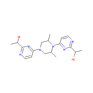 1S/C18H26N6O2/c1-11-9-23(15-5-7-19-17(21-15)13(3)25)10-12(2)24(11)16-6-8-20-18(22-16)14(4)26/h5-8,11-14,25-26H,9-10H2,1-4H3/t11-,12+,13-,14-/m1/s1