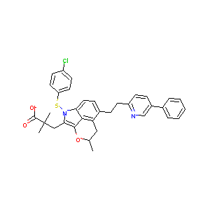 CC1CC2=C(C=CC3=C2C(=C(N3SC4=CC=C(C=C4)Cl)CC(C)(C)C(=O)O<br />)O1)CCC5=NC=C(C=C5)C6=CC=CC=C6