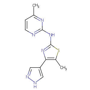 InChI=1S/C12H12N6S/c1-7-3-4-13-11(16-7)18-12-17-10(8(2)19-12)9-5-14-15-6-9/h3-6H,1-2H3,(H,14,15)(H,13,16,17,18)