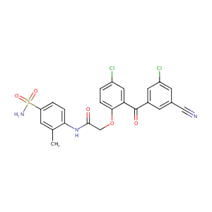 S(=O)(=O)(c1cc(c(NC(=O)COc2c(C(=O)c3cc(C#N)cc(c3)Cl)cc(<br />cc2)Cl)cc1)C)N