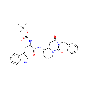 1S/C31H37N5O5/c1-31(2,3)41-29(39)34-25(16-21-18-32-23-13-8-7-12-22(21)23)28(38)33-24-14-9-15-35-26(24)17-27(37)36(30(35)40)19-20-10-5-4-6-11-20/h4-8,10-13,18,24-26,32H,9,14-17,19H2,1-3H3,(H,33,38)(H,34,39)/t24-,25+,26+/m1/s1