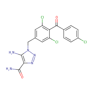 C1=CC(=CC=C1C(=O)C2=C(C=C(C=C2Cl)CN3C(=C(N=N3)C(=O)N)N)<br />Cl)Cl