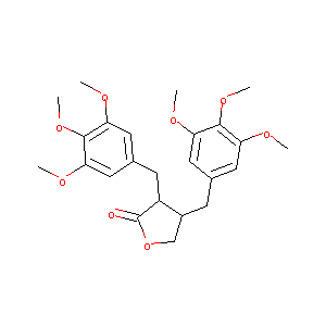 COC1=CC(=CC(=C1OC)OC)CC2COC(=O)C2CC3=CC(=C(C(=C3)OC)OC)<br />OC