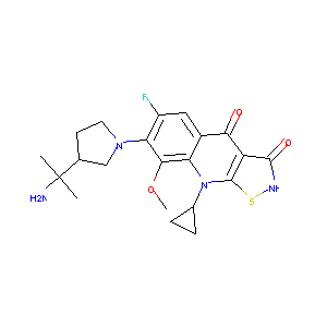 1S/C21H25FN4O3S/c1-21(2,23)10-6-7-25(9-10)16-13(22)8-12-15(18(16)29-3)26(11-4-5-11)20-14(17(12)27)19(28)24-30-20/h8,10-11H,4-7,9,23H2,1-3H3,(H,24,28)/t10-/m1/s1