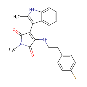 InChI=1S/C22H20FN3O2/c1-13-18(16-5-3-4-6-17(16)25-13)19-20(22(28)26(2)21(19)27)24-12-11-14-7-9-15(23)10-8-14/h3-10,24-25H,11-12H2,1-2H3