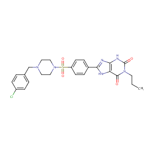 Ref 530243J Med Chem. 2009 Jul 9;52(13):3994-4006.1-alkyl-8-(piperazine-1-sulfonyl)phenylxanthines: development and characterization of adenosine A2B receptor antagonists and a new radioligand with subnanomolar affinity and subtype specificity.