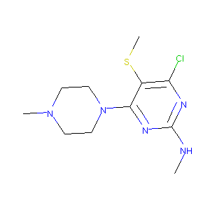 CNC1=NC(=C(C(=N1)Cl)SC)N2CCN(CC2)C