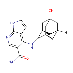 InChI=1S/C18H22N4O2/c19-16(23)13-8-21-17-12(1-2-20-17)15(13)22-14-10-3-9-4-11(14)7-18(24,5-9)6-10/h1-2,8-11,14,24H,3-7H2,(H2,19,23)(H2,20,21,22)/t9?,10-,11+,14?,18?