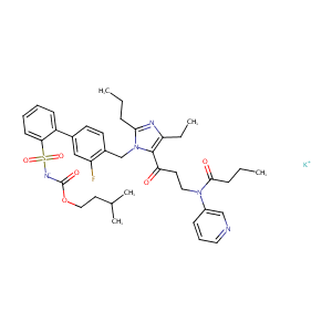 S(=O)(=O)([N-]C(=O)OCCC(C)C)c1c(c2cc(c(Cn3c(c(nc3CCC)CC<br />)C(=O)CCN(C(=O)CCC)c3cnccc3)cc2)F)cccc1.[K+]