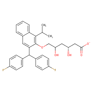 InChI=1S/C32H32F2O5/c1-19(2)30-27-6-4-3-5-22(27)15-28(32(30)39-18-26(36)16-25(35)17-29(37)38)31(20-7-11-23(33)12-8-20)21-9-13-24(34)14-10-21/h3-15,19,25-26,31,35-36H,16-18H2,1-2H3,(H,37,38)/p-1/t25-,26?/m1/s1