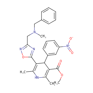 C1(=C(NC(=C(C1c1cc([N+](=O)[O-])ccc1)C(=O)OC)C)C)c1nc(n<br />o1)CN(Cc1ccccc1)C