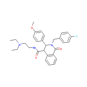 CCN(CC)CCNC(=O)C1C(N(C(=O)C2=CC=CC=C12)CC3=CC=C(C=C3)F)<br />C4=CC=C(C=C4)OC