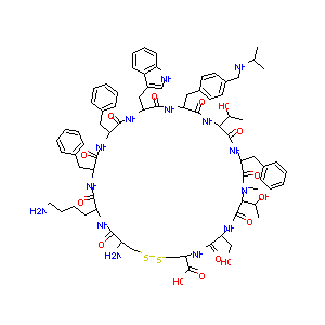 CC(C)NCC1=CC=C(C=C1)CC2C(=O)NC(C(=O)NC(C(=O)N(C(C(=O)NC<br />(C(=O)NC(CSSCC(C(=O)NC(C(=O)NC(C(=O)NC(C(=O)NC(C(=O)N2)<br />CC3=CNC4=CC=CC=C43)CC5=CC=CC=C5)CC6=CC=CC=C6)CCCCN)N)C(<br />=O)O)CO)C(C)O)C)CC7=CC=CC=C7)C(C)O