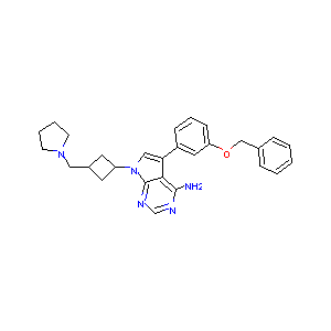 1S/C28H31N5O/c29-27-26-25(22-9-6-10-24(15-22)34-18-20-7-2-1-3-8-20)17-33(28(26)31-19-30-27)23-13-21(14-23)16-32-11-4-5-12-32/h1-3,6-10,15,17,19,21,23H,4-5,11-14,16,18H2,(H2,29,30,31)
