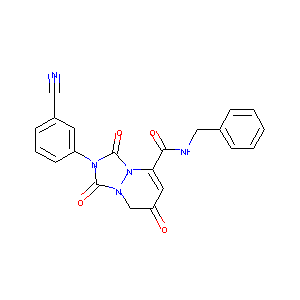 1S/C21H15N5O4/c22-11-15-7-4-8-16(9-15)25-20(29)24-13-17(27)10-18(26(24)21(25)30)19(28)23-12-14-5-2-1-3-6-14/h1-10H,12-13H2,(H,23,28)