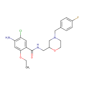 InChI=1S/C21H25ClFN3O3/c1-2-28-20-10-19(24)18(22)9-17(20)21(27)25-11-16-13-26(7-8-29-16)12-14-3-5-15(23)6-4-14/h3-6,9-10,16H,2,7-8,11-13,24H2,1H3,(H,25,27)