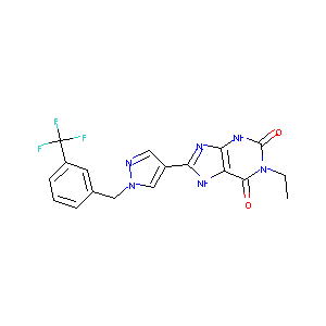 CCN1C(=O)C2=C(NC1=O)N=C(N2)C3=CN(N=C3)CC4=CC(=CC=C4)C(F<br />)(F)F