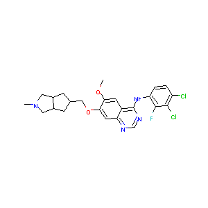CN1CC2CC(CC2C1)COC3=C(C=C4C(=C3)N=CN=C4NC5=C(C(=C(C=C5)<br />Cl)Cl)F)OC