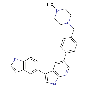 InChI=1S/C27H27N5/c1-31-10-12-32(13-11-31)18-19-2-4-20(5-3-19)23-15-24-25(17-30-27(24)29-16-23)21-6-7-26-22(14-21)8-9-28-26/h2-9,14-17,28H,10-13,18H2,1H3,(H,29,30)