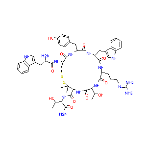 CC(C1C(=O)NC(C(SSCC(C(=O)NC(C(=O)NC(C(=O)NC(C(=O)N1)CCC<br />N=C(N)N)CC2=CNC3=CC=CC=C32)CC4=CC=C(C=C4)O)NC(=O)C(CC5=<br />CNC6=CC=CC=C65)N)(C)C)C(=O)NC(C(C)O)C(=O)N)O