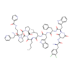 InChI=1S/C86H104Cl2N18O13/c1-4-5-26-66(84(117)106(86(119)73-30-18-37-105(73)83(116)63(91)41-53-21-15-33-93-46-53)85(118)72-29-17-36-104(72)82(115)61(89)25-13-14-35-95-75(108)54-22-16-34-94-47-54)98-77(110)67(38-50(2)3)100-79(112)69(43-55-48-96-64-27-11-9-23-57(55)64)102-78(111)68(42-51-19-7-6-8-20-51)101-80(113)70(44-56-49-97-65-28-12-10-24-58(56)65)103-81(114)71(45-74(92)107)99-76(109)62(90)40-52-31-32-59(87)60(88)39-52/h6-12,15-16,19-24,27-28,31-34,39,46-50,61-63,66-73,96-97H,4-5,13-14,17-18,25-26,29-30,35-38,40-45,89-91H2,1-3H3,(H2,92,107)(H,95,108)(H,98,110)(H,99,109)(H,100,112)(H,101,113)(H,102,111)(H,103,114)/t61-,62-,63+,66+,67+,68+,69-,70-,71+,72+,73+/m1/s1