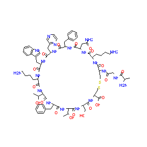 CC(C1C(=O)NC(C(=O)NC(C(=O)NC(C(=O)NC(CSSCC(C(=O)NC(C(=O<br />)NC(C(=O)NC(C(=O)NC(C(=O)NC(C(=O)NC(C(=O)N1)CCCCN)CC2=C<br />NC3=CC=CC=C32)CC4=NC=CN=C4)CC5=CC=CC=C5)CC(=O)N)CCCCN)N<br />C(=O)CNC(=O)C(C)N)C(=O)O)CO)C(C)O)CC6=CC=CC=C6)O