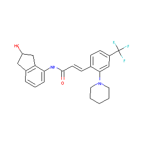 C1CCN(CC1)C2=C(C=CC(=C2)C(F)(F)F)C=CC(=O)NC3=CC=CC4=C3C<br />C(C4)O
