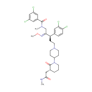 InChI=1S/C33H41Cl4N5O4/c1-38-31(43)18-22-5-4-11-42(33(22)45)26-8-12-41(13-9-26)14-10-27(21-6-7-28(36)29(37)17-21)30(39-46-3)20-40(2)32(44)23-15-24(34)19-25(35)16-23/h6-7,15-17,19,22,26-27H,4-5,8-14,18,20H2,1-3H3,(H,38,43)/b39-30+/t22-,27-/m1/s1