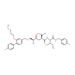 [C@@H](NC(=O)[C@@H](C[C@@H]([C@@H](N)COCc1ccc(c(c1)OCCC<br />OC)c1ccc(cc1)F)O)C(C)C)(C(=O)NCc1ccc(cc1)F)[C@@H](C)CC