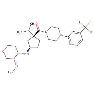 InChI=1S/C29H34F3N3O6/c1-2-39-25-16-35(21-8-10-28(38,11-9-21)19-6-7-23-24(13-19)41-17-40-23)15-22(25)34-26(36)14-33-27(37)18-4-3-5-20(12-18)29(30,31)32/h3-7,12-13,21-22,25,38H,2,8-11,14-17H2,1H3,(H,33,37)(H,34,36)/t21-,22-,25-,28-/m0/s1