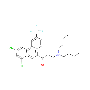 Halfan; Halofantrino; HALOFANTRINE HYDROCHLORIDE; Halofantrine HCl; Halofantrine Hydrochloride [USAN]; Halofantrine [USAN]; Halofantrino [Spanish]; WR 171669; Dl-WR 171669; Halfan (TN); Halofantrine hydrochloride (USAN); WR 171,699; WR-171669; WR-171699; SK&F-102866; WR-171,669; (+-)-Halofantrine hydrochloride; (1)-Halofantrine; 1,3-Dichloro-.alpha.-[2-(dibutylamino)ethyl]-6-(trifluoromethyl)-9-phenanthrene-methanol; 1,3-Dichloro-.alpha.-[2-(dibutylamino)ethyl]-6-(trifluoromethyl)-9-phenathrenemethanol; 1,3-Dichloro-6-trifluoromethyl-9-(3-(dibutylamino)-1-hydroxypropyl)phenanthrene HCl; 1,3-Dichloro-alpha-(2-(dibutylamino)ethyl)-6-(trifluoromethyl)-9-phenanthrenemethanol hydrochloride; 1,3-Dichloro-alpha-(2-(dibutylamino)ethyl)-6-(trifluoromethyl)phenanthren-1-methanol hydrochloride; 1-(1,3-Dichloro-6-trifluoromethyl-9-phenanthryl)-3-(di-n-butylamino)propanol hydrochloride; 1-(1,3-dichloro-6-trifluoromethyl-9-phenanthryl)-3-di(n-butyl)aminopropanol HCl; 3-(Dibutylamino)-1-(1,3-dichloro-6-(trifluoromethyl)phenanthren-9-yl)propan-1-ol hydrochloride; 3-(dibutylamino)-1-[1,3-dichloro-6-(trifluoromethyl)phenanthren-9-yl]propan-1-ol; 3-(dibutylamino)-1-[1,3-dichloro-6-(trifluoromethyl)phenanthren-9-yl]propan-1-ol hydrochloride; 9-(3-(dibutylamino)-1-hydroxypropyl)-1,3-dichloro-6-(trifluoromethyl)phenanthrene hydrochloride; 9-Phenanthrenemethanol, 1,3-dichloro-.alpha.-[2-(dibutylamino)ethyl]-6-(trifluoromethyl)-(1); 9-Phenanthrenemethanol, 1,3-dichloro-alpha-(2-(dibutylamino)ethyl)-6-(trifluoromethyl)-, hydrochloride; 9-Phenanthrenemethanol, 1,3-dichloro-alpha-(2-(dibutylamino)ethyl)-6-(trifluoromethyl)-,hydrochloride