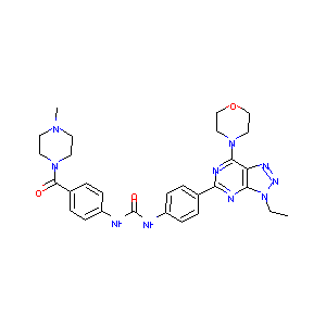 J Med Chem. 2010 Jan 28;53(2):798-810.Lead optimization of N-3-substituted 7-morpholinotriazolopyrimidines as dual phosphoinositide 3-kinase/mammalian target of rapamycin inhibitors: discovery of PKI-402.