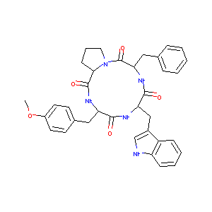 COC1=CC=C(C=C1)CC2C(=O)NC(C(=O)NC(C(=O)N3CCCC3C(=O)N2)C<br />C4=CC=CC=C4)CC5=CNC6=CC=CC=C65