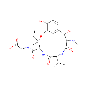 CCC1(C(NC(=O)C(NC(=O)C(C(C2=CC(=C(C=C2)O)O1)O)NC)C(C)C)<br />C(=O)NCC(=O)O)C