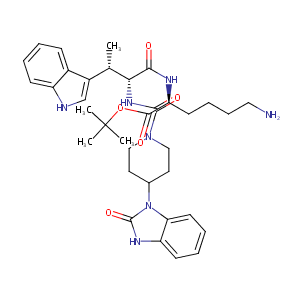 InChI=1S/C35H47N7O5/c1-22(25-21-37-26-12-6-5-11-24(25)26)30(31(43)38-28(14-9-10-18-36)32(44)47-35(2,3)4)40-33(45)41-19-16-23(17-20-41)42-29-15-8-7-13-27(29)39-34(42)46/h5-8,11-13,15,21-23,28,30,37H,9-10,14,16-20,36H2,1-4H3,(H,38,43)(H,39,46)(H,40,45)/t22-,28-,30+/m0/s1