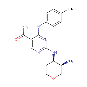c1(nc(c(cn1)C(=O)N)Nc1ccc(cc1)C)N[C@H]1[C@H](COCC1)N