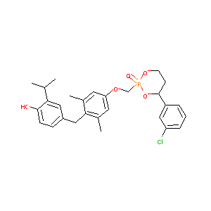 CC1=CC(=CC(=C1CC2=CC(=C(C=C2)O)C(C)C)C)OCP3(=O)OCCC(O3)<br />C4=CC(=CC=C4)Cl