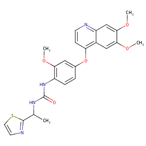 InChI=1S/C24H24N4O5S/c1-14(23-26-9-10-34-23)27-24(29)28-17-6-5-15(11-20(17)30-2)33-19-7-8-25-18-13-22(32-4)21(31-3)12-16(18)19/h5-14H,1-4H3,(H2,27,28,29)