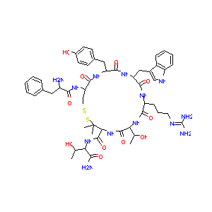 CC(C1C(=O)NC(C(SSCC(C(=O)NC(C(=O)NC(C(=O)NC(C(=O)N1)CCC<br />N=C(N)N)CC2=CNC3=CC=CC=C32)CC4=CC=C(C=C4)O)NC(=O)C(CC5=<br />CC=CC=C5)N)(C)C)C(=O)NC(C(C)O)C(=O)N)O